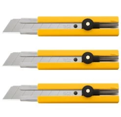 OLFA H-1/CP3 Classic Extra Heavy-Duty Ratchet-Lock Utility Knife With Anti-Slip Grip, 3-Pack