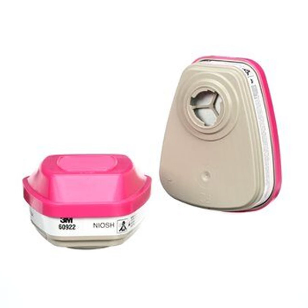 The 3M Acid Gas Cartridge/Filter 60922 is a NIOSH approved against certain acid gases and particulates. Use with 3M Half and Full Facepiece, 6000, 3M Half and Full Facepiece, 7000, and 3M Half and Full Facepiece, FF-400 Series with bayonet filter holders.