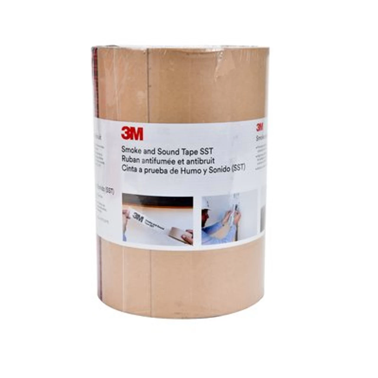 3M Smoke and Sound Barrier Tape, 8 in x 75 ft3M Smoke and Sound Tape is an elastomeric tape that can act as a barrier to smoke and airborne sound transmission in non-fire-rated wall and floor assemblies, by minimizing transfer between rooms and floors when installed in a variety of construction joints and some through penetrations. This tape creates an effective barrier to mitigate smoke and toxic gas spread, with an L-rating of less than 1 CFM/linear foot at ambient and 204°C (400°F). It has been tested to ASTM E 90 and ASTM E 413 – achieving an STC-Rating of 54 when tested in an STC 54-rated wall assembly.