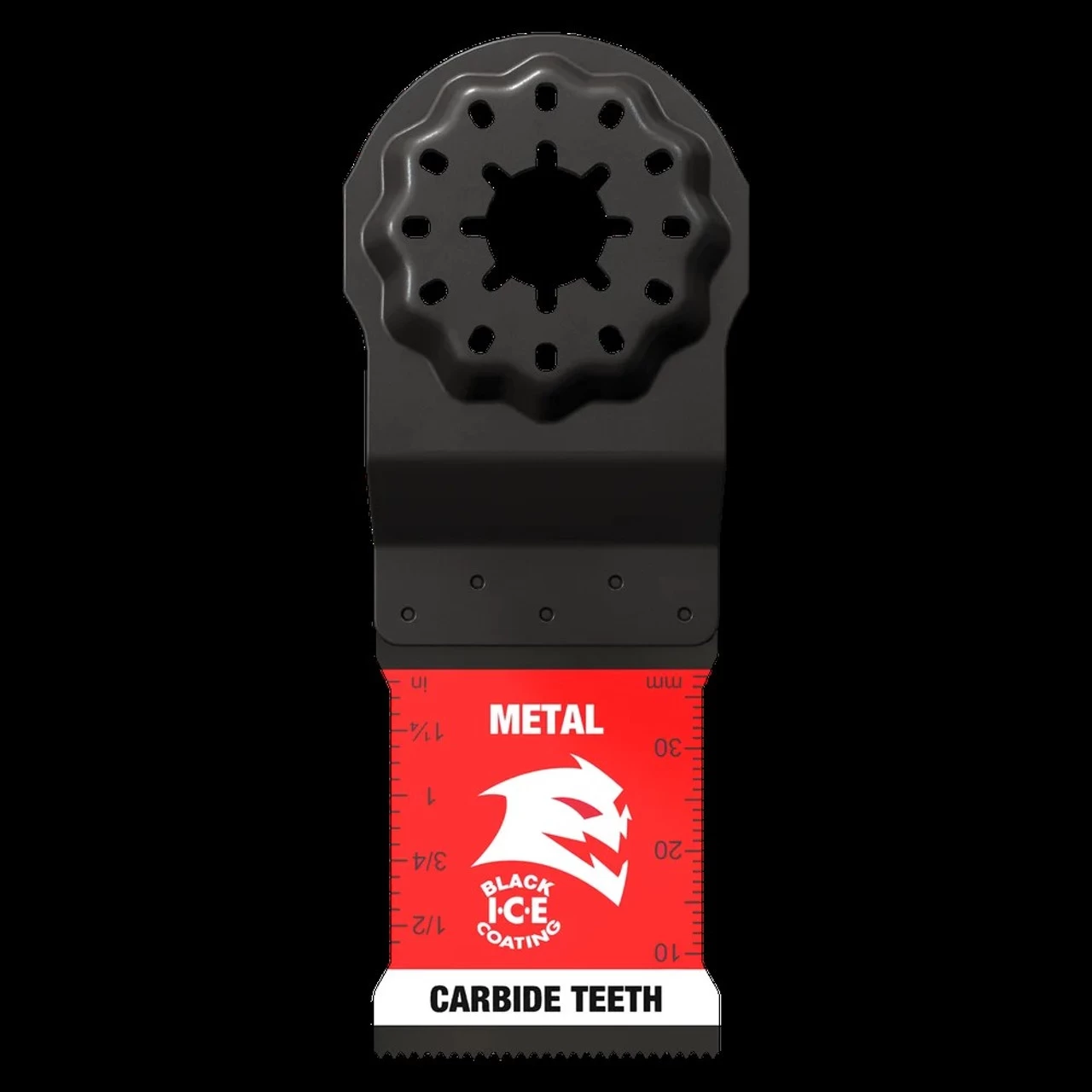 Diablo’s Starlock carbide oscillating blades feature application specific designs that deliver extreme durability and superior cutting life in metal cutting. High-performance carbide teeth deliver an unmatched up to 50X longer cutting life versus standard bi-metal blades. An optimized blade and tooth design, along with Black I.C.E. (Industrial Cooling Element) keeps the teeth cool and build up free for fast, clean cuts. Tool free quick-change interface fits Fein and other Starlock tools; also compatible with non-Starlock multi-tools.