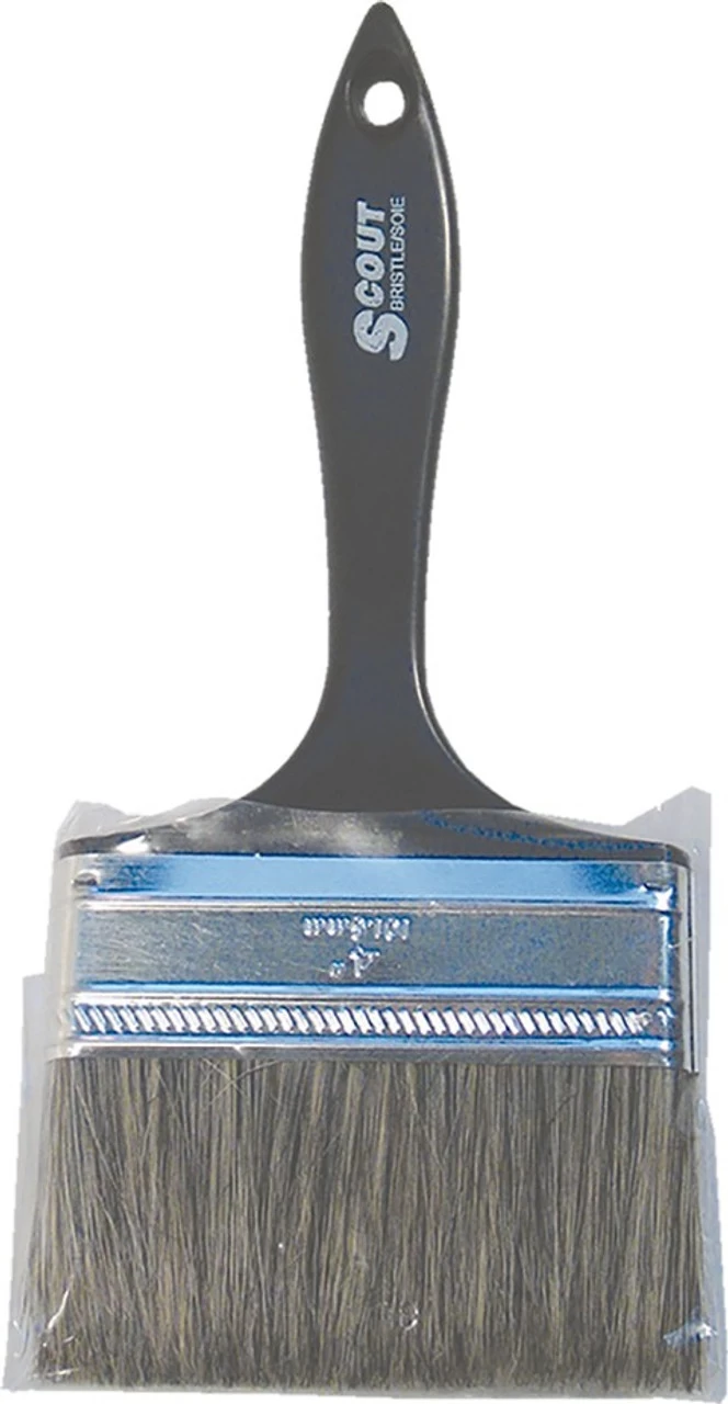 Dynamic’s Scout Flat Sash Brush, 100mm (4″) is a flat sash brush with plastic handle. The mixed China bristle is naturally tapered and flagged. To be used for all oil and alkyd-based paints. Round steel ferrule