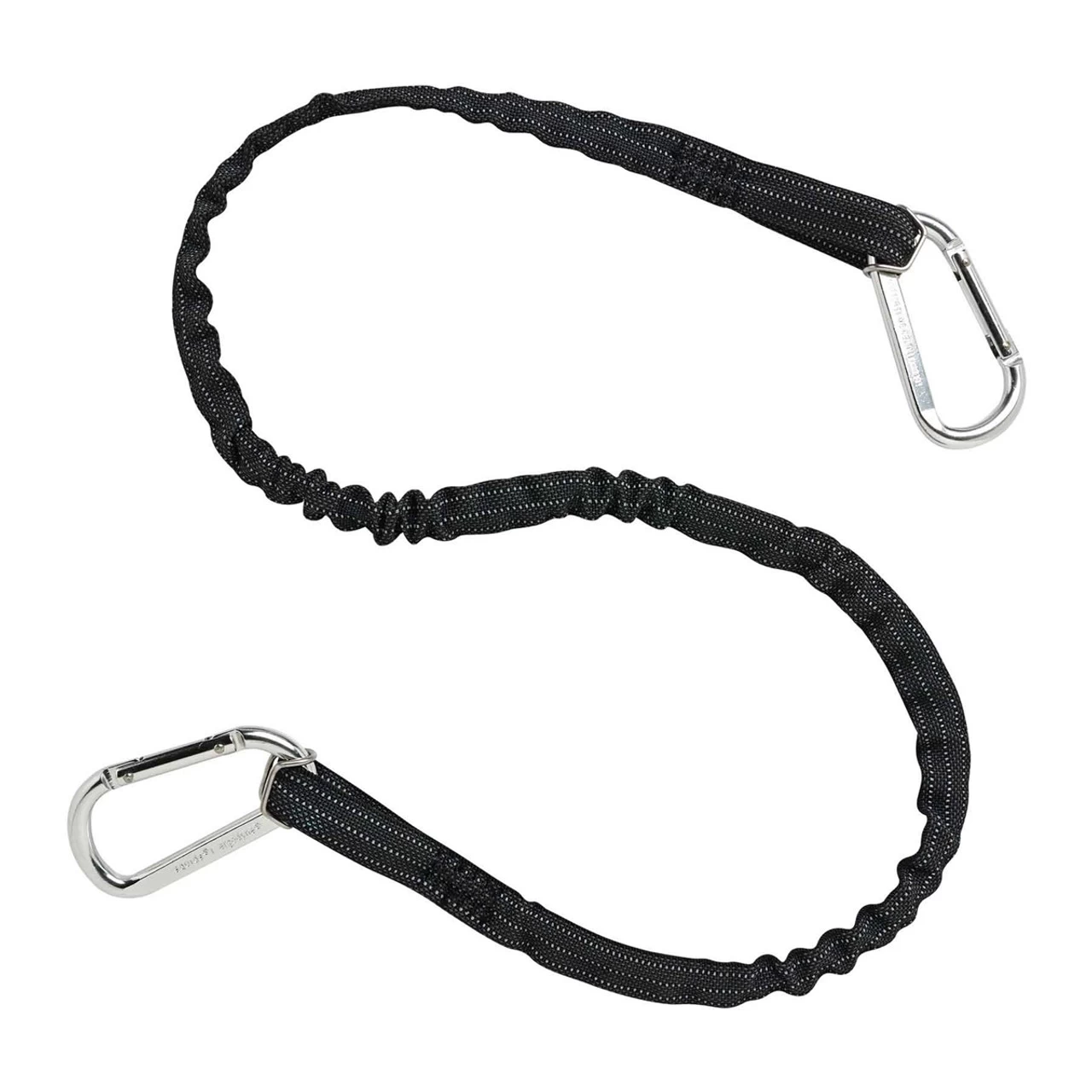 The Ergodyne Squids 3110 Dual Carabiner tethers tools to help prevent injuries, damage to tools/equipment, and decrease any lost productivity from dropped tools. It features an energy absorbing cord with tubular nylon webbing and offers extra security through lock stitching at both ends. Can hold a maximum safe working capacity of 10 lbs.