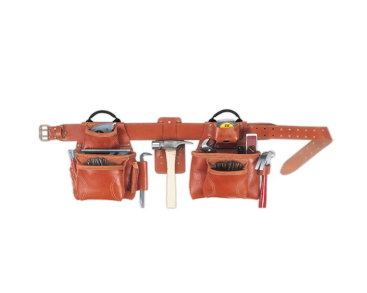 - Leather combination square and pry bar holders.