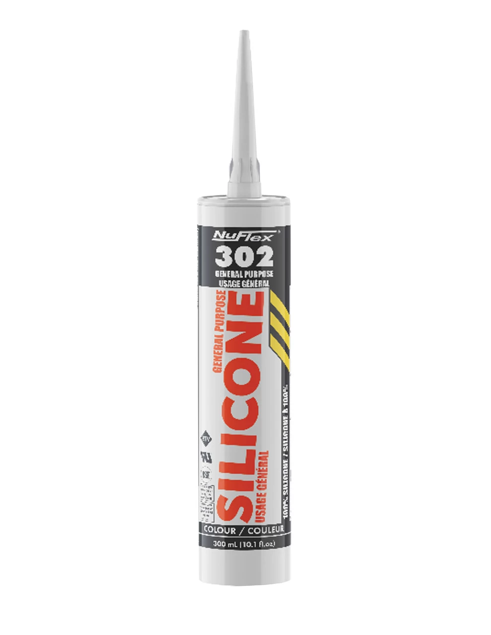 - NuFlex 302 General Purpose (GP) Silicone Sealant is a 100% RTV, NSF Approved, acetoxy sealant designed for multiple applications. It is easily applied and will not sag when used for overhead or sidewall applications. NuFlex 302 GP adheres to many substrates, including metal, glass, most types of wood, ceramics, and many plastics. This one component caulking material cures to form a tough, rubbery solid that can withstand extreme temperatures, UV and time. NuFlex 302 GP is a medium modulus, one component caulking material with a consistency similar to toothpaste. It cures to form a tough, rubbery solid through exposure to moisture in the air. NuFlex 302 GP can be easily used for ceiling and sidewall applications without worrying about sagging, slumping or running off the application.