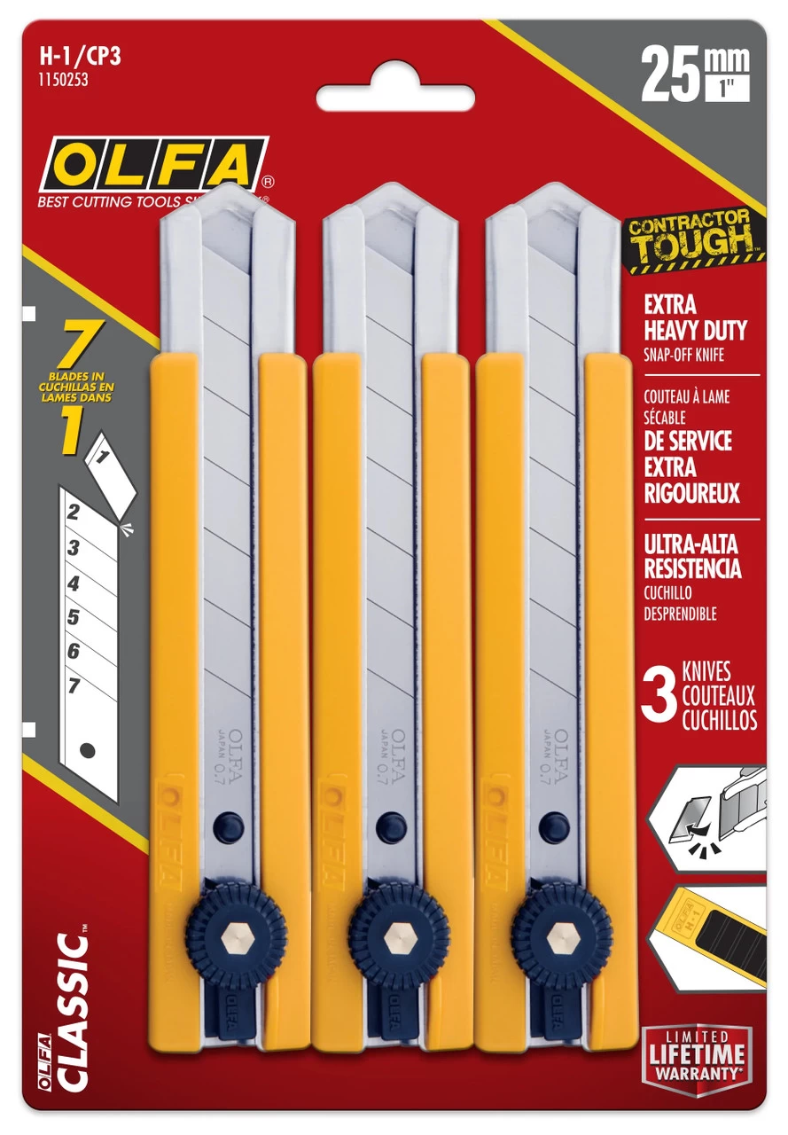 OLFA H-1/CP3 Classic Extra Heavy-Duty Ratchet-Lock Utility Knife with Anti-Slip Grip, 3-Pack