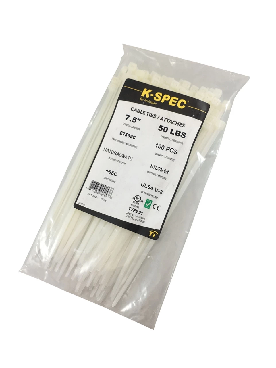 Techspan E7509C Natural Standard Cable Tie 7.5 inch