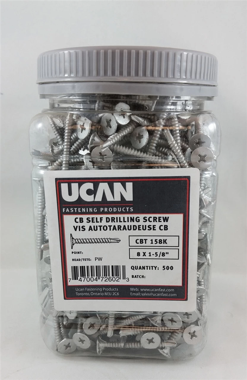 Ucan CBT158K, 8 X 1-5/8″ Self Drilling Cement Board Screws-Jug