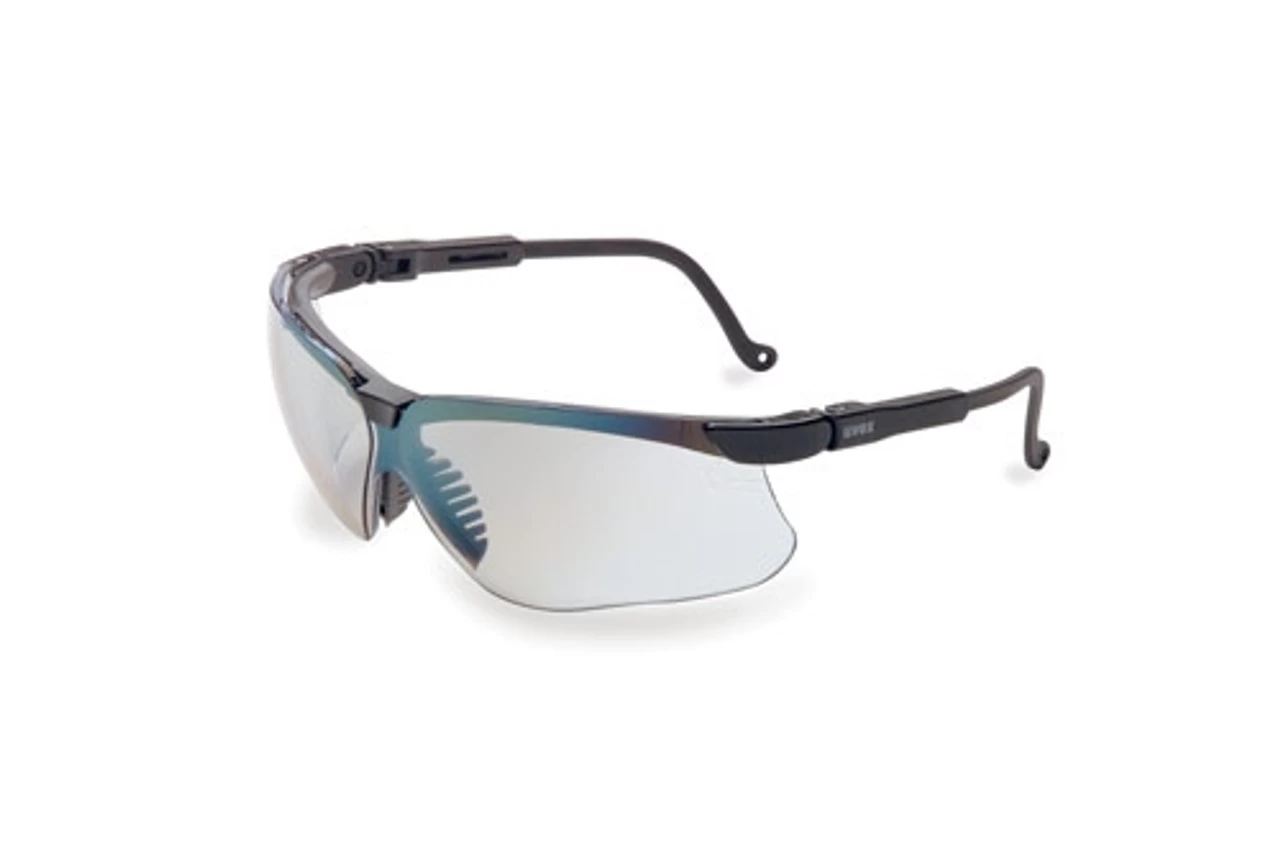 - These Uvex safety glasses from the Genesis model offer wrap-around lens providing exceptional peripheral vision and protection.