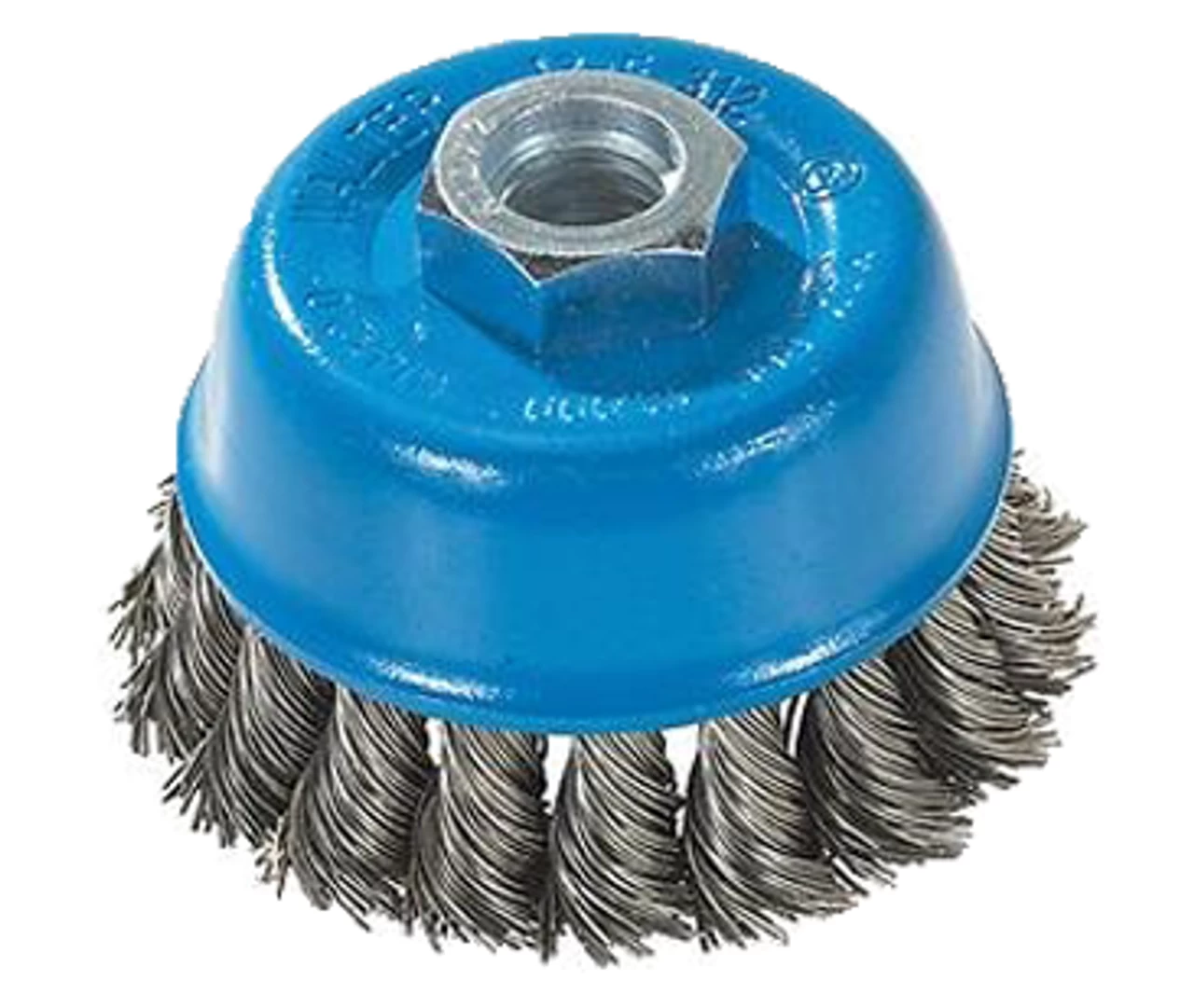 Knot-twisted for heavy-duty brushing such as deburring, weld edge cleaning, removal of scale, spatter, heavy rust and corrosion, etc.